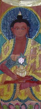E' Il più noto dei Dhyanibuddha. Elemento fuoco, viene dall'est., il colore è rosso, è seduto in posizione di profonda meditazione-
